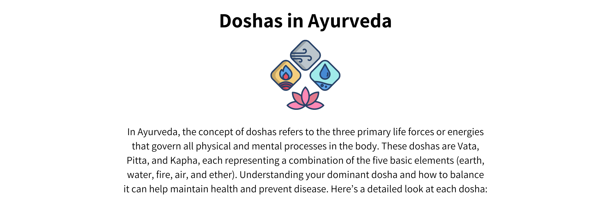 By understanding and respecting the unique balance of Vata, Pitta, and Kapha in your body, you can make informed choices that enhance your well-being and prevent imbalances that lead to health issues.